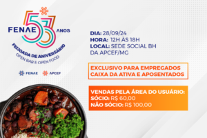 Sociocultural Fenae 53 anos: evento open bar e food (feijoada) será realizado na Sede Social BH para empregados da Caixa Ler post » 26 de julho de 2024