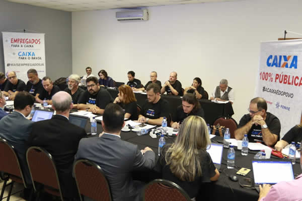 A defesa do papel público, social e forte da Caixa é uma prioridade. Foi denunciado ainda, na ocasião, o projeto do governo de enfraquecer e diminuir a atuação do banco público, com o propósito de entregar à iniciativa privada setores como cartões, loterias, gestão de ativos de terceiros. Esse processo de desmonte passa também pelas ações de retirada de direitos dos empregados, com redução de trabalhadores nas unidades, o que gera sobrecarga de trabalho e adoecimento.