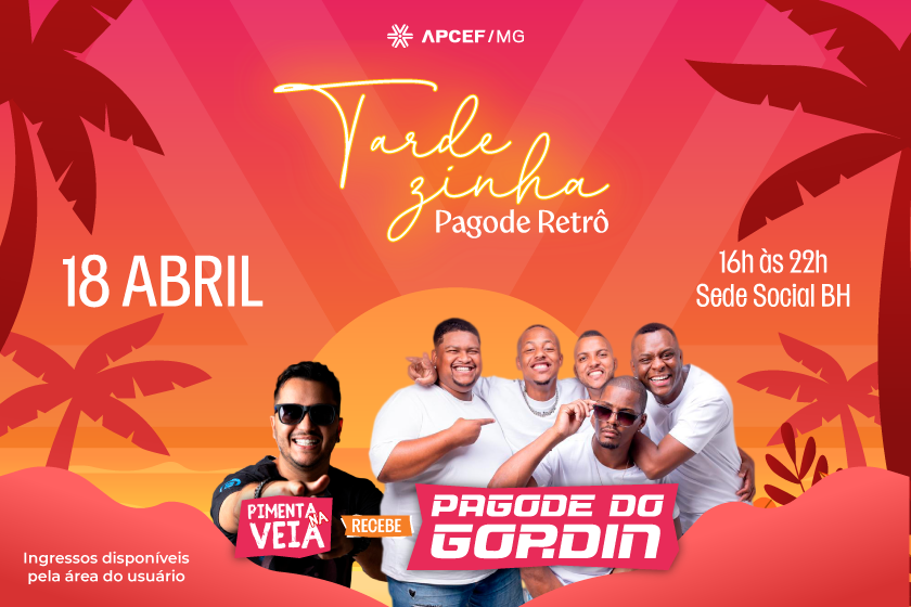 Atenção pagodeiros de plantão: a APCEF/MG acaba de lançar oficialmente a sua Tardezinha. Venha celebrar um dia de muita alegria e amigos ao som de um pagode de qualidade, ao estilo anos 90 e 2000! 🎶 Shows 🎤🪕 BANDA PIMENTA NA VEIA RECEBE O PAGODE DO GORDIN ✏️ Informações 📆 Data: 18 de Abril (sábado)⏰ […]