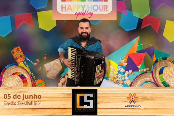 Vem aí o Happy Hour especial esquenta para o Arraiá 2025 dia (05/06) com Célio Santtos na Sede Social BH