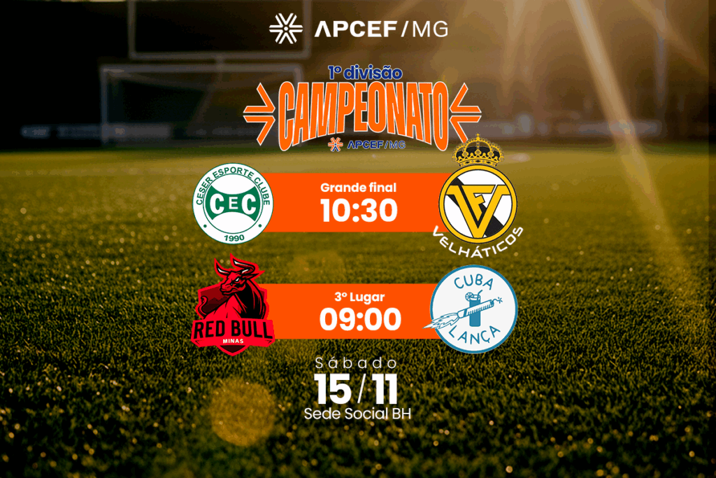 ⚽ O Campeonato de Futebol da Primeira Divisão da APCEF/MG chega ao seu momento mais esperado. No próximo sábado, dia 8 de novembro, às 10h30, Ceser e Velháticos se enfrentam na grande final da temporada 2025, no campo da Sede Social BH, prometendo uma partida equilibrada e repleta de emoção. As duas equipes protagonizaram muita […]