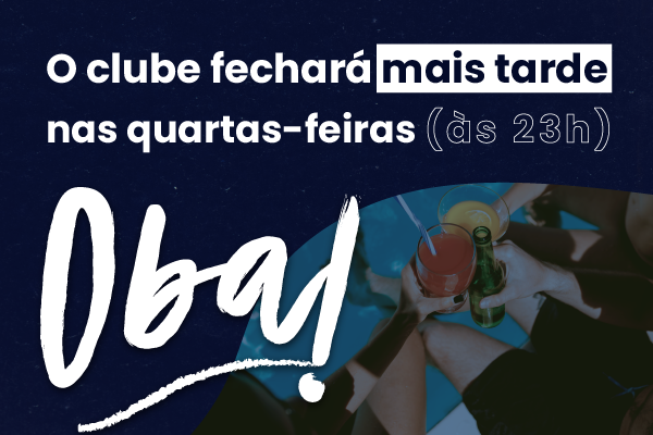Atenção associados: a partir do dia 08 de março de 2023 o funcionamento da Sede Social BH nas quartas-feiras será estendido até as 23h, conforme já é praticado nas quintas-feiras. Mais tempo para você aproveitar o clube neste dia! Relembre os dias e horários de funcionamento: ❌ Segunda-feira: não funciona (manutenção);✅ Terça-feira: 8h às 18h;✅ […]