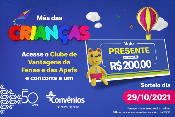 O clube de vantagens da Fenae e das Apcefs é voltado exclusivamente a empregados Caixa ativos, aposentados e pensionistas, associados às Apcefs. Associe-se! A plataforma Convênios, da Fenae e das Apcefs, está com grandes descontos para o mês das crianças. E para os empregados Caixa, associados à uma das 27 Apcefs, que acessarem o site do clube […]