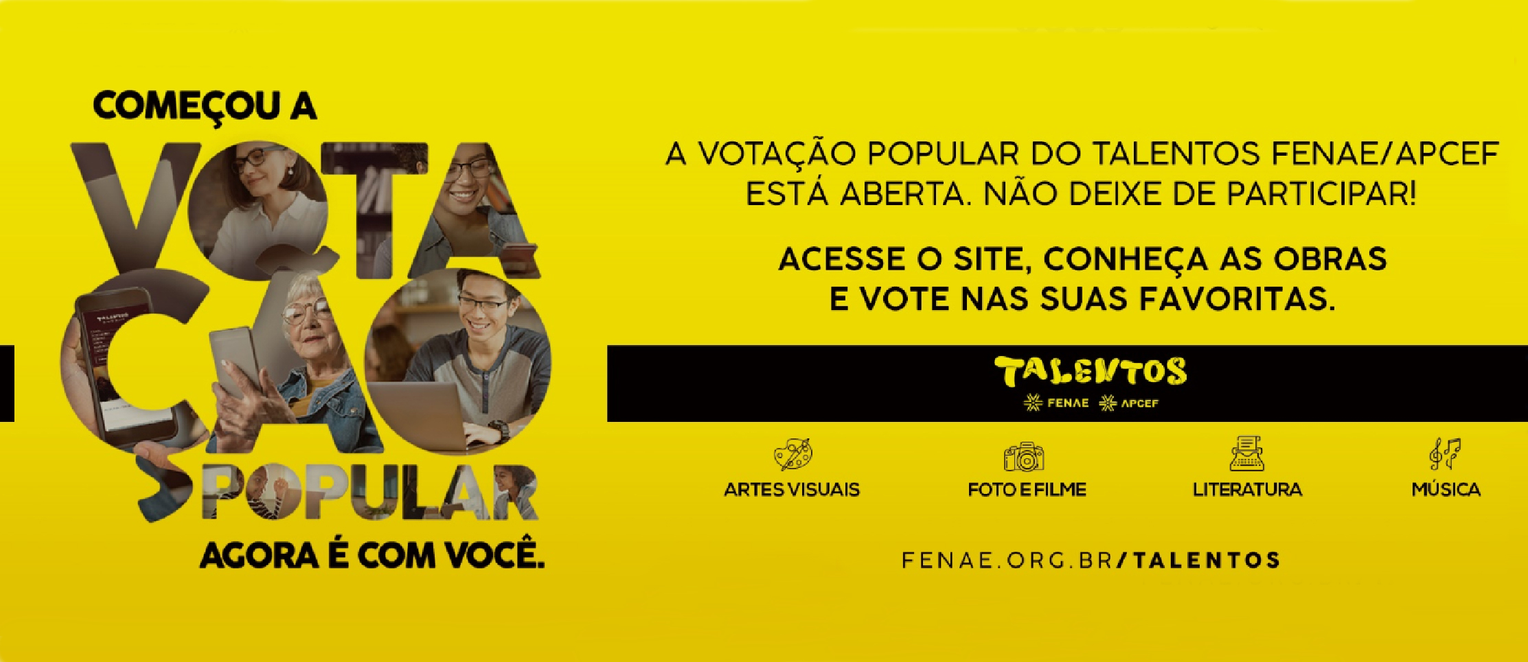A segunda fase do Talentos Fenae/Apcef 2019 está no ar. Todos os empregados Caixa da ativa e com acesso ao Mundo Caixa podem participar. Para isso basta acessar o hotsite talentos2019.mundocaixa.com.br, interagir e divulgar as obras favoritas cadastradas no concurso. A promoção vai até o dia 17 de julho.