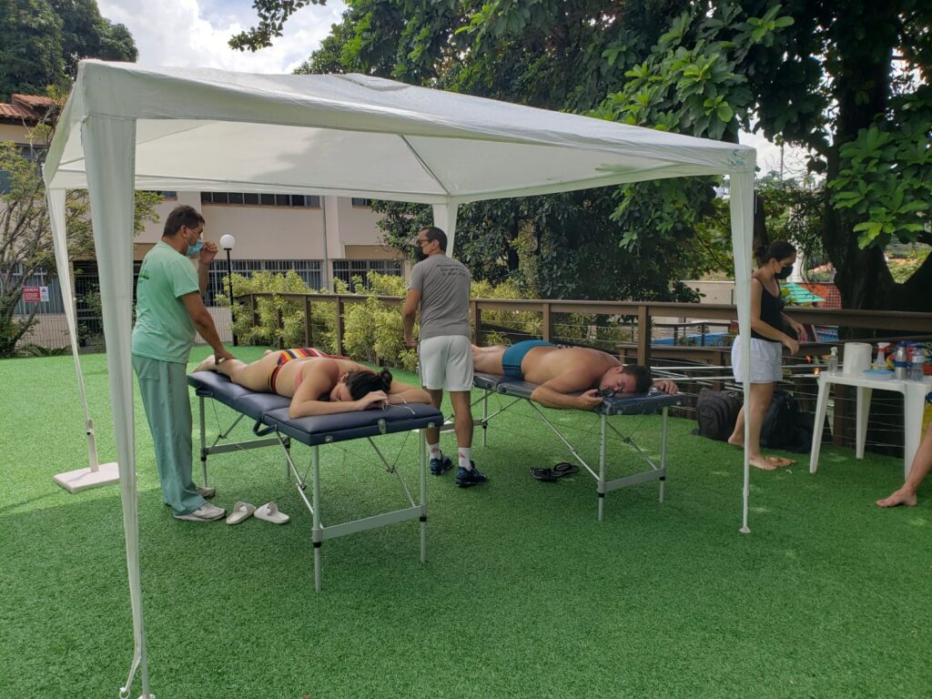 No sábado, muitas pessoas aproveitaram a aula de hidrodance para praticar exercícios físicos e se refrescarem ao mesmo tempo. As crianças lotaram a brinquedoteca e se divertiram muito acompanhada dos nossos monitores. E pra quem só queria curtir o final de semana na beira da piscina, a música ao vivo com Paulinho e Alessandra animaram o ambiente. Já no domingo tivemos todo cuidado especial com a saúde dos associados. Uma mensagem de atenção ao sedentarismo e a obesidade foi passada no stand que promoveu aferição de pressão arterial e o IMC (Índice de Massa Corporal). O dia também foi de relaxar com a massagem na tenda próximo ao parquinho infantil. A atração fez tanto sucesso que teve gente querendo repetir.