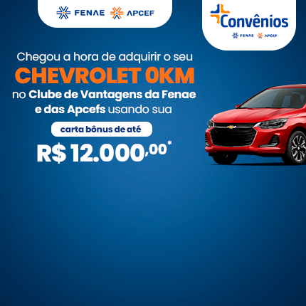 A plataforma de convênios da Federação Nacional das Associações da Caixa (Fenae) e das Apcefs tem uma excelente oportunidade para quem quer trocar de carro neste ano. A boa notícia é que a montadora Chevrolet está dando um bônus de até R$ 12 mil para os associados no Clube de vantagem.