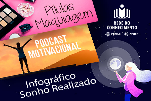 A Rede do Conhecimento, plataforma de educação da Fenae e das Apcefs que já oferece mais de 100 cursos à distância, traz novidades que prometem motivação de sobra para os participantes. A Rede acaba de colocar no ar um curso com vídeos-aulas de maquiagem, um infográfico sobre autoconhecimento e um podcast motivacional.