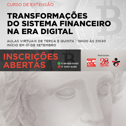 O curso “Transformações do Sistema Financeiro na Era Digital,” que está em sua terceira edição, é promovido pelo Sindicato dos Bancários do ABC, Faculdade 28 de Agosto e Sindicato dos Bancários de São Paulo Osasco e Região. O objetivo é esclarecer bancários, demais trabalhadores do ramo financeiro, estudantes e outros segmentos da sociedade sobre as mudanças que o sistema financeiro vem passando, especialmente na última década.