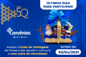 Benefícios Convênios: sorteio de abril do aniversário de 50 anos da Fenae será uma cesta de chocolate Ler post » 9 de abril de 2021