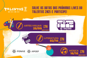 Sociocultural Não perca! A segunda live do Talentos é neste sábado (25) Ler post » 24 de setembro de 2021