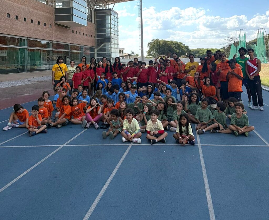 Mas a grande experiência do dia foi o treino especial no CTE da UFMG, onde as crianças tiveram contato com o universo do atletismo olímpico! Sob orientação, elas participaram de estações práticas com: