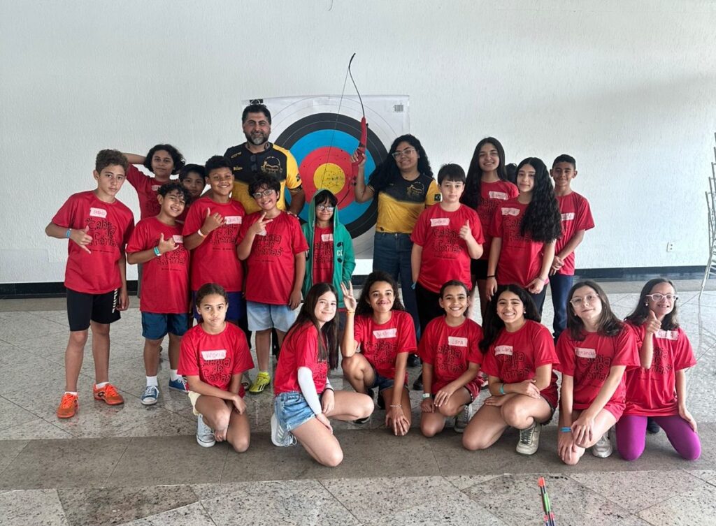 🏹 Arco e Flecha – Com concentração e mira afiada, a garotada se aventurou nessa atividade que trabalha foco, equilíbrio e coordenação.