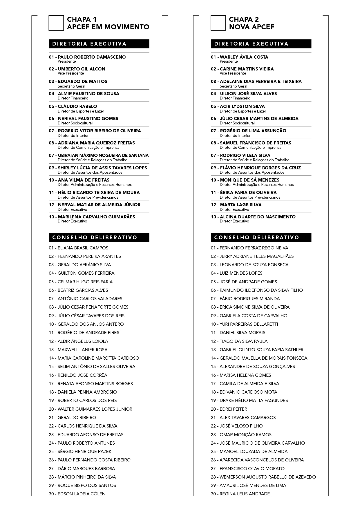 Duas Chapas solicitaram inscrição para concorrer às Eleições APCEF/MG triênio 2019/2022 (Conselho Deliberativo e Diretoria Executiva):