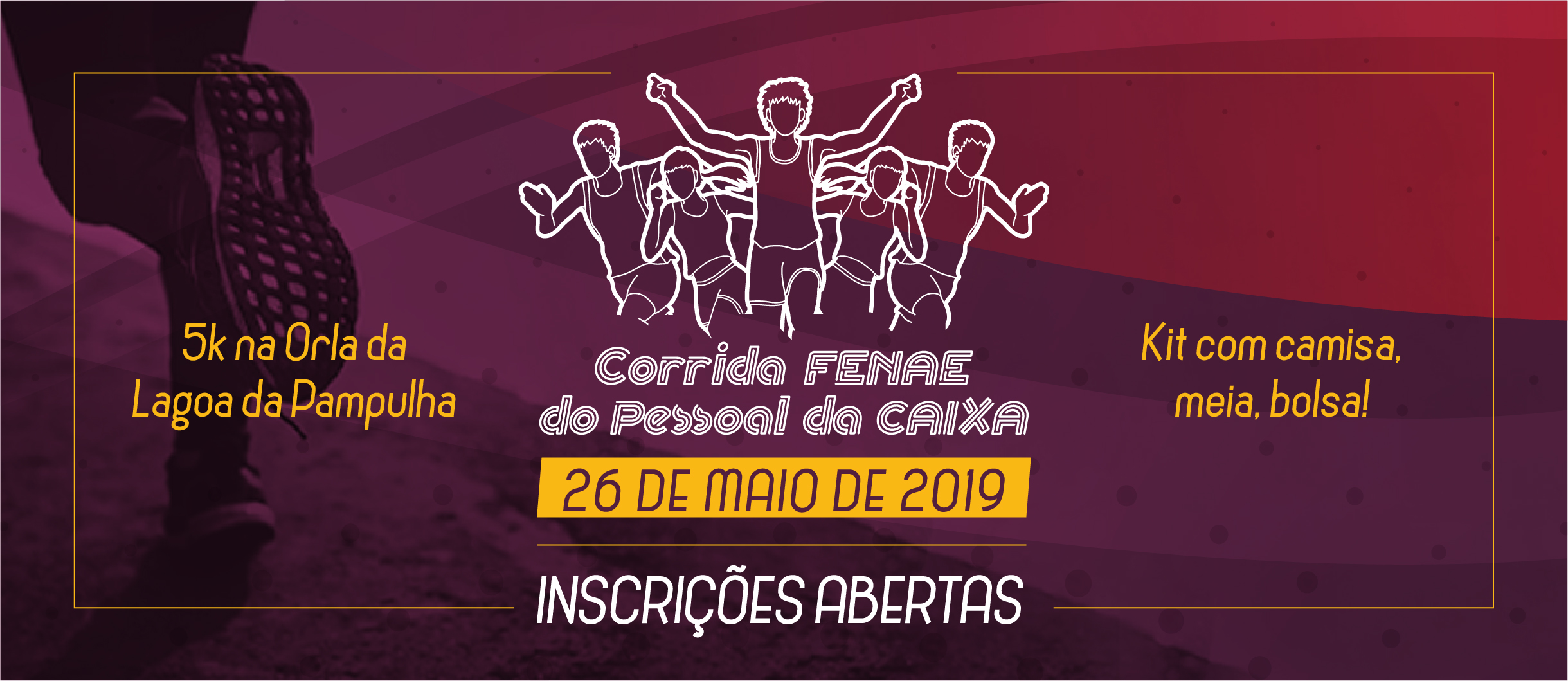Estão abertas, até 24 de maio de 2019, as inscrições para a Corrida Fenae do Pessoal da Caixa 2019! Com percurso de 5km pela orla da Lagoa da Pampulha, a corrida será realizada no domingo, 26 de maio, com concentração às 7h e largada às 8h30 na Nova Praça da Pampulha, em frente à Sede Social BH da APCEF/MG.