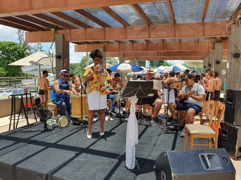 A cantora mineira e grande intérprete, Dóris dos Santos, comandou sua banda com uma apresentação memorável à beira da piscina semiolímpica, fazendo releitura de grandes clássicos do samba e contando a história da construção do estilo musical, construído por artistas negros.