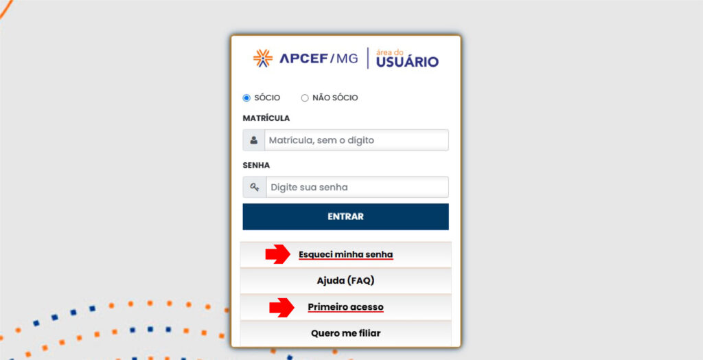 1️⃣ Acesse a área do usuário neste link: associados.apcefmg.org.br;