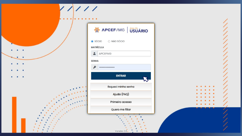 1- Acesse a Área do Usuário, utilizando sua matrícula e senha. Caso não consiga fazer o login, entre em contato conosco pelo WhatsApp: (31) 3439-5000.