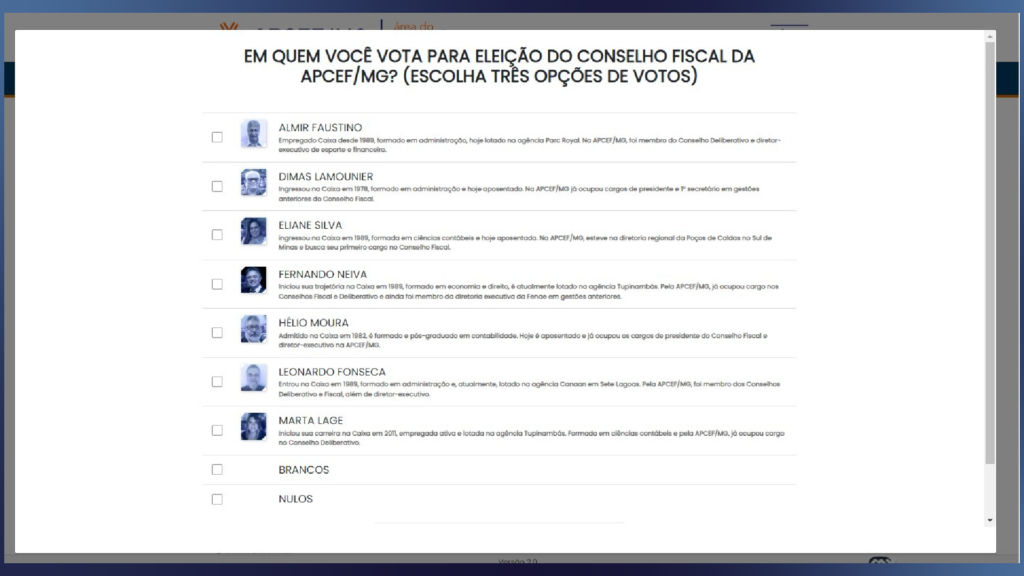 ➡️ Ainda não sabe em quem votar? Acesse a página principal da Eleição para o o Conselho Fiscal e conheça os candidatos.