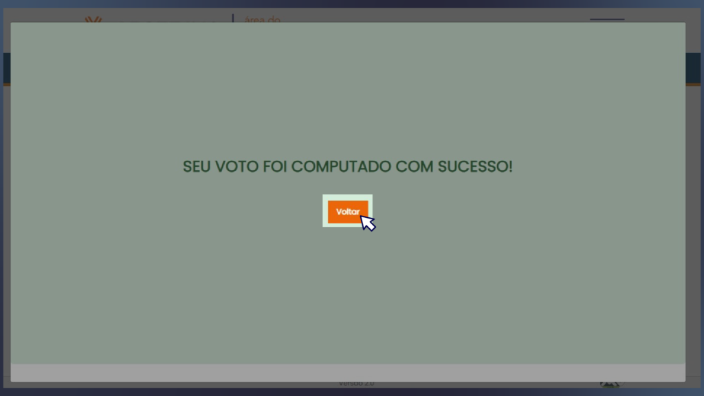 5- Aparecerá a mensagem “seu voto foi computado com sucesso”. Clique em “Voltar”.