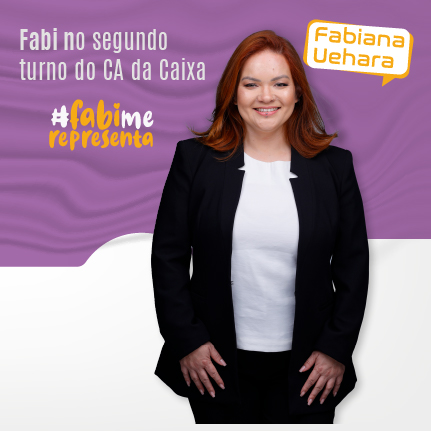 Fabiana Uehara, candidata apoiada pela Federação Nacional das Associações do Pessoal da Caixa (Fenae), APCEF/MG e outras entidades representativas dos empregados da Caixa, está no segundo turno da eleição para eleger o representante dos trabalhadores no Conselho de Administração do banco público. Fabianinha, como é mais conhecida, teve 45,09% dos votos; em segundo lugar, Antônio Messias Bastos, com 38,85% dos votos.