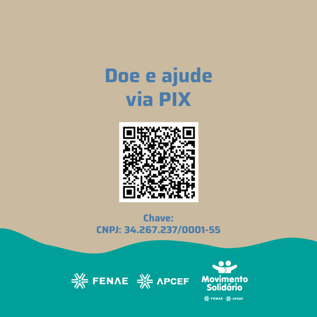 A Apcef/RJ receberá doações de alimentos não perecíveis, água, roupas e produtos de higiene. Contribuições em dinheiro poderão ser feitas por PIX. Empregados Caixa poderão doar pontos do Nosso Valor, por meio do Movimento Solidário