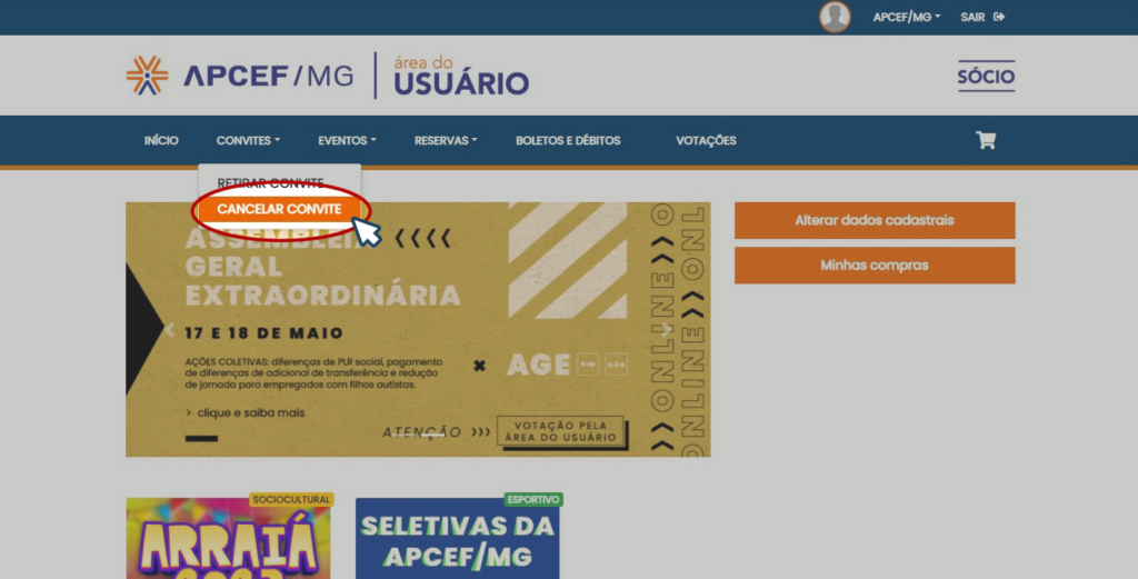 Atençãos associados da APCEF/MG: já está disponível pela área do usuário em nosso site ou App, a nova funcionalidade de cancelamentos de convites. É mais comodidade e segurança para os associados, mas é necessário ficar atento às regras, confira: