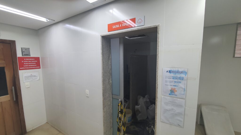 Informamos aos sócios que as obras na sauna masculina a vapor estão sendo efetuadas de maneira gradativa. Neste momento, está sendo efetuado o procedimento de revestimento do teto. Após a conclusão desta etapa, serão instaladas a nova rede elétrica e cerâmica, além da realização dos testes finais. A previsão é de que a sauna seja liberada nos próximos dias.