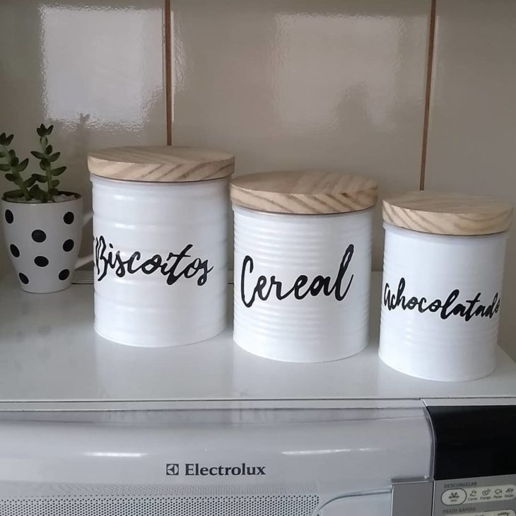 Potes de mantimentos com latas