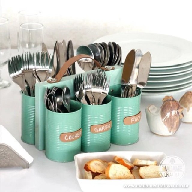 Porta-talheres com latas