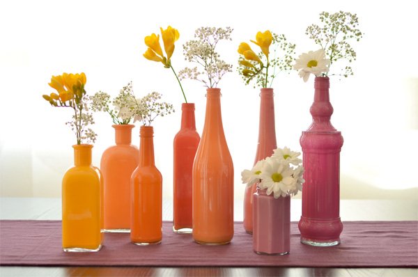 Vasos de flores feitos com garrafas de vidro