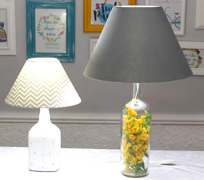 Garrafas de vidro também podem se transformar em abajur