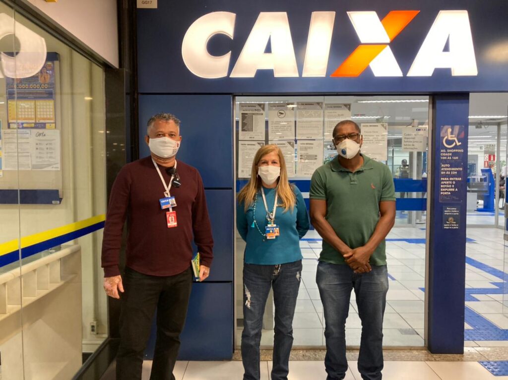 Na última sexta-feira (02/07), o presidente da APCEF/MG, Paulo Roberto Damasceno, o diretor sociocultural da APCEF/MG e diretor regional do Sindicato dos Bancários de BH e Região, Nery Gomes e a diretora de comunicação do respectivo Sindicato, Eliana Brasil, foram até a agência Shopping Cidade para averiguar os protocolos de saúde após um surto de Covid-19 entre os funcionários.