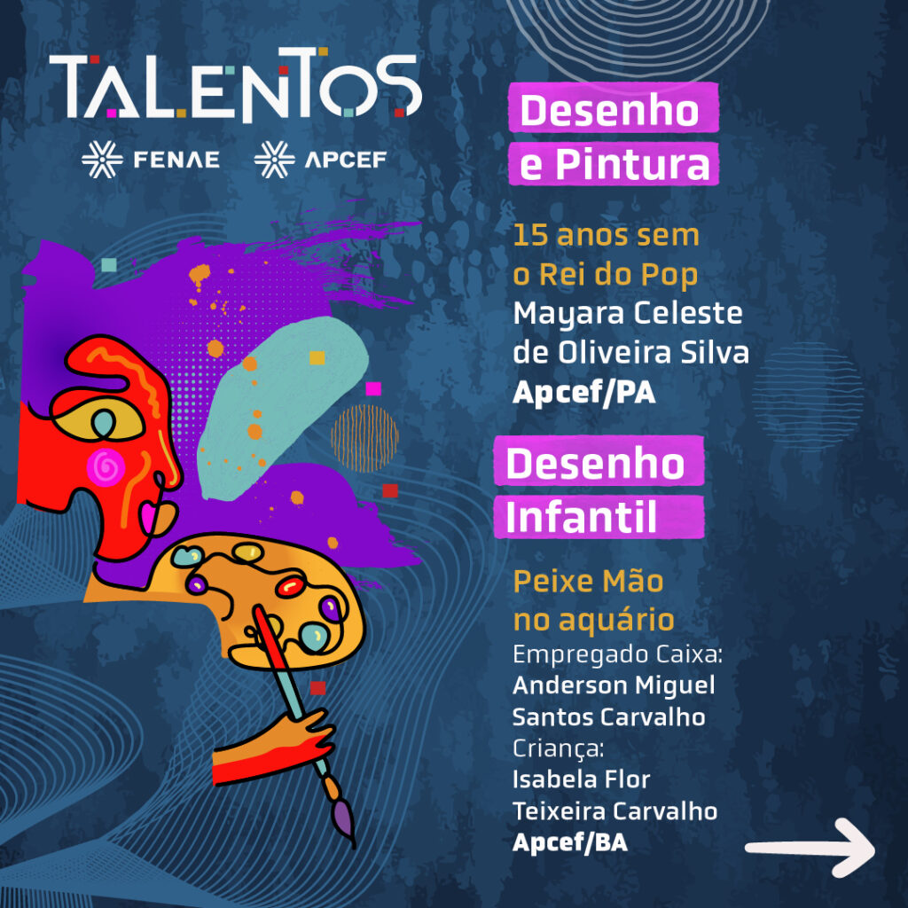 A Fenae divulgou os nomes dos vencedores do voto popular no concurso Talentos Fenae/Apcef 2024-2025. As obras mais votadas por modalidade em todo o concurso poderão viver a experiência da final do Talentos na grande final em Foz do Iguaçu (PR), de 09 a 12 de abril. Acompanhe tudo sobre o concurso no hotsite: https://talentos.fenae.org.br