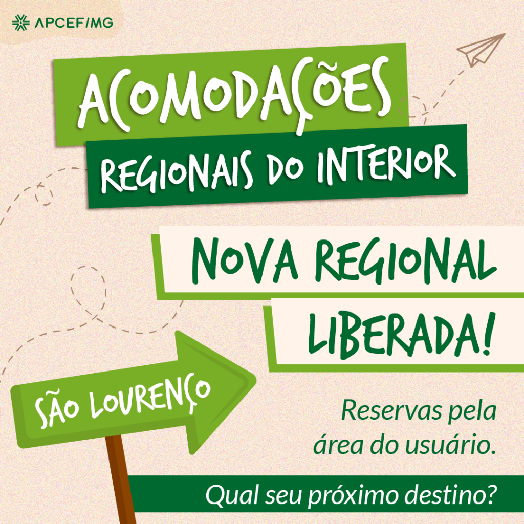 Neste momento temos disponíveis no sistema, acomodações nas seguintes unidades da APCEF/MG: Belo Horizonte, Divinópolis, Poços de Caldas e agora, São Lourenço.