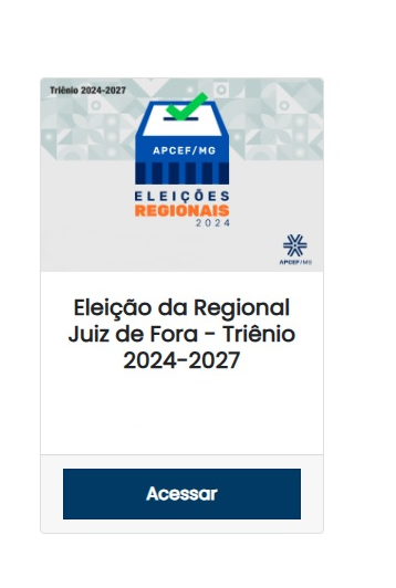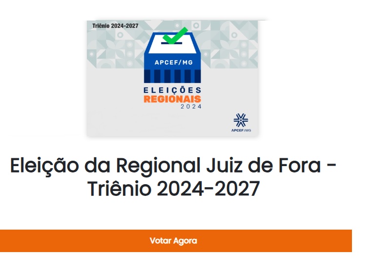 Atenção associados Caixa da ativa e aposentados vinculados à Regional JUIZ DE FORA da APCEF/MG: nesta quarta e quinta, dias 22 e 23 de janeiro de 2025, será realizada uma nova eleição para definir a diretoria da regional para o triênio 2025-2028.