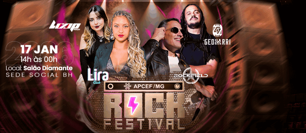 No dia 17 de janeiro de 2026 (sábado), das 14h às 00h, a Sede Social BH vai tremer com o APCEF Rock Festival! Um encontro feito para associados, familiares e convidados que curtem boa música, diversão e o verdadeiro espírito rock’n’roll.