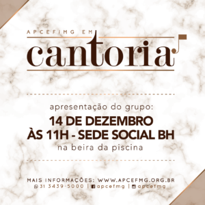 Neste sábado, 14 de dezembro, vai ter atração especial na beira da piscina semiolímpica da Sede Social BH: alunos do projeto APCEF em Cantoria, formado por associados, vão se apresentar ao vivo a partir das 11h. Venha prestigiar os colegas!