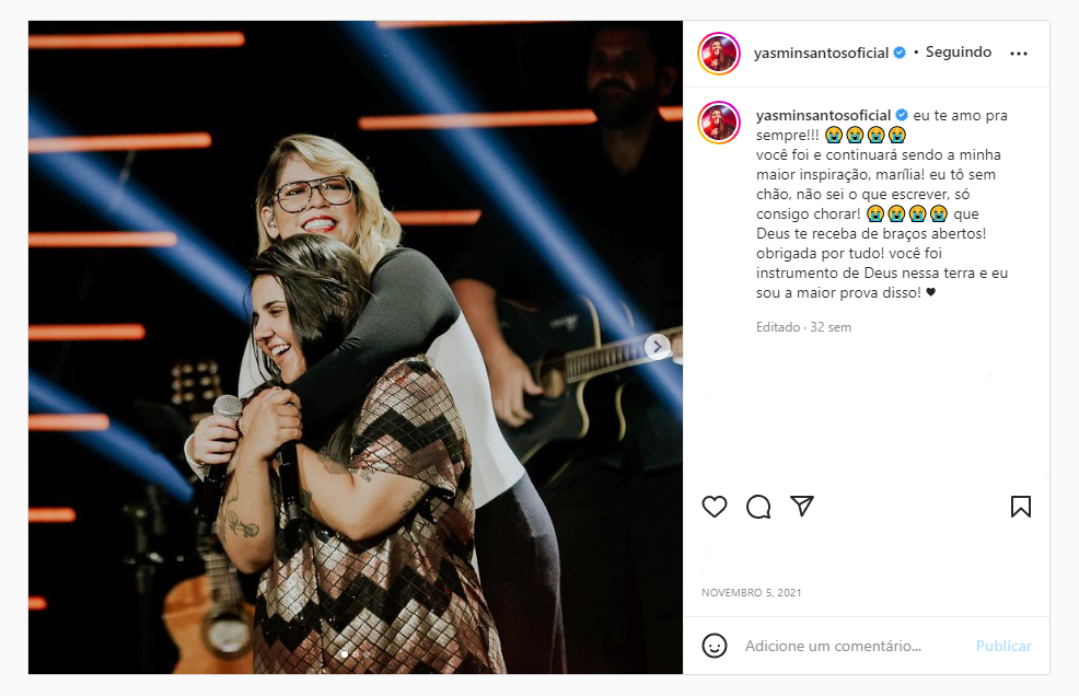 Por essas e outras, a morte prematura de Marília Mendonça, em dezembro de 2021, foi muito sentida por Yasmin.