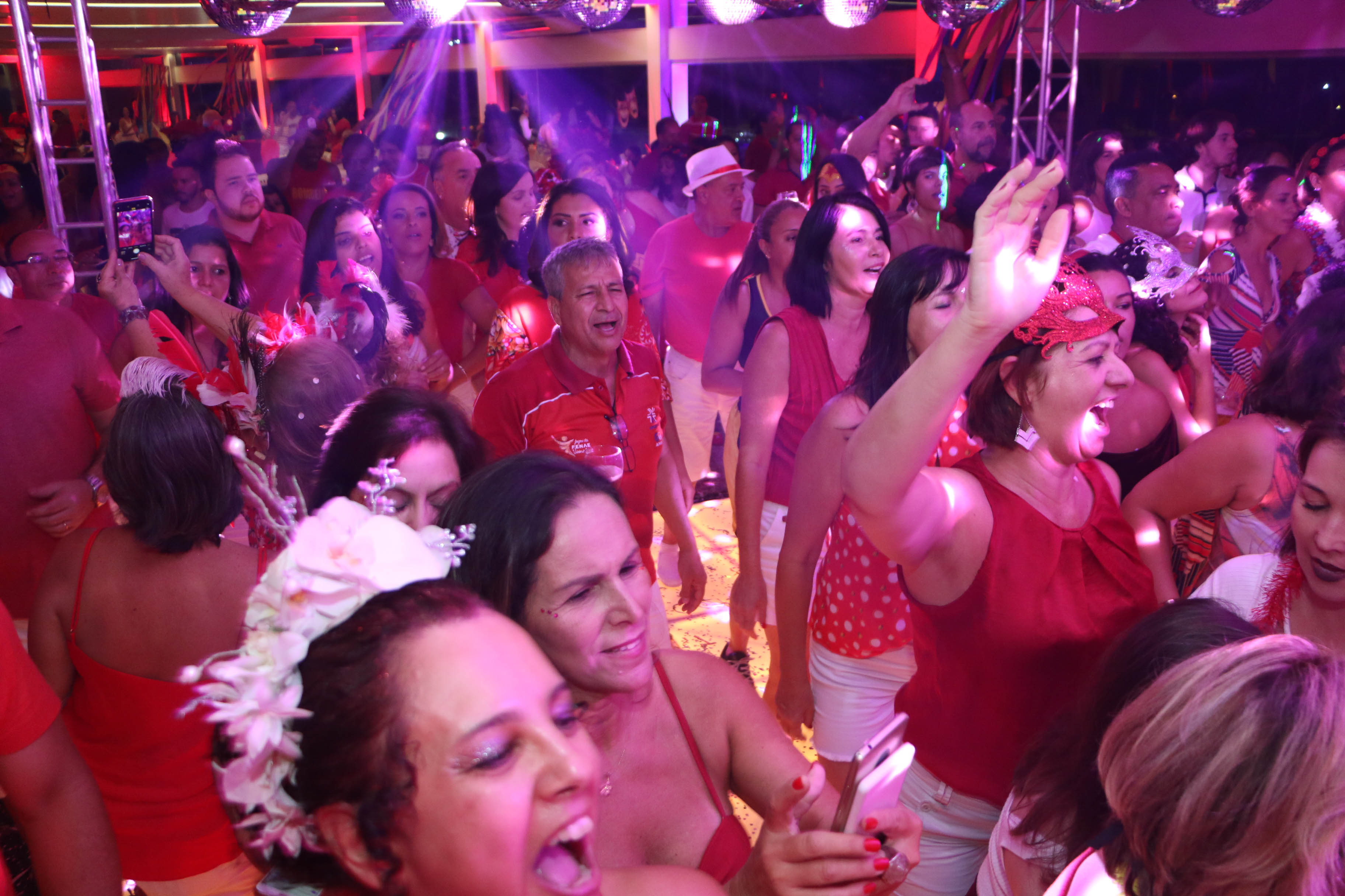 O Salão Diamante da Sede Social BH foi totalmente colorido de vermelho e branco na noite do último sábado, 23 de fevereiro. Associados e convidados lotaram o espaço para mais uma edição do Baile Vermelho e Branco, o tradicional Grito de Carnaval da Associação.
