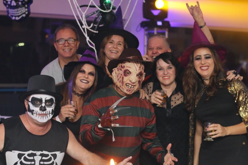 Associados e convidados capricharam nas fantasias e adereços assustadores para a festa de Halloween da APCEF/MG realizada no último sábado, 26 de outubro, no Salão Diamante da Sede Social BH. A decoração chamou a atenção dos participantes, que curtiram uma noite assustadoramente divertida com shows das bandas Piratas do Arrudas e Dona Odeteh, apresentando dezenas de clássicos do Pop e Rock nacional e internacional.