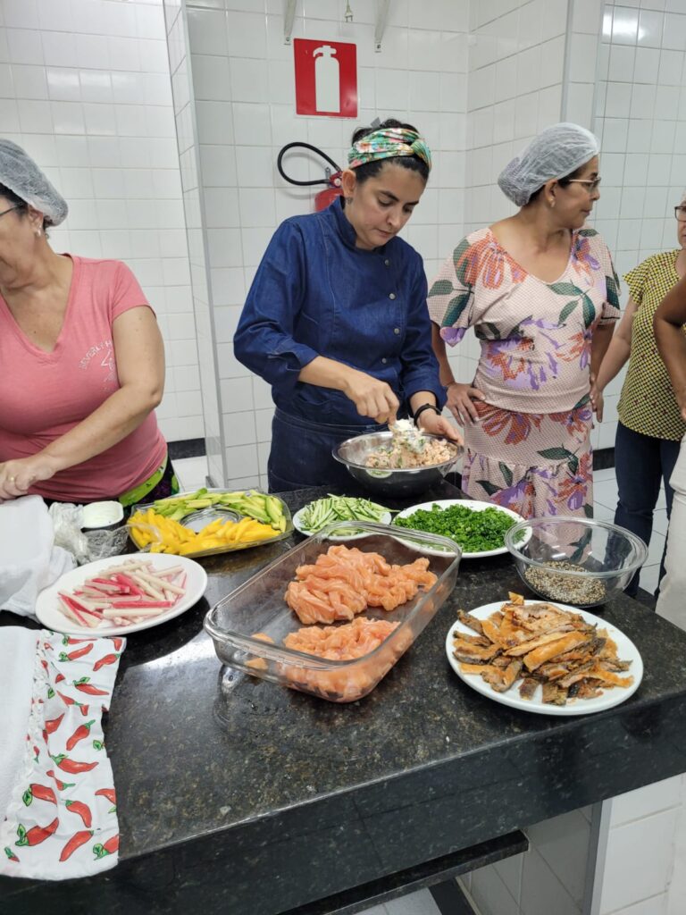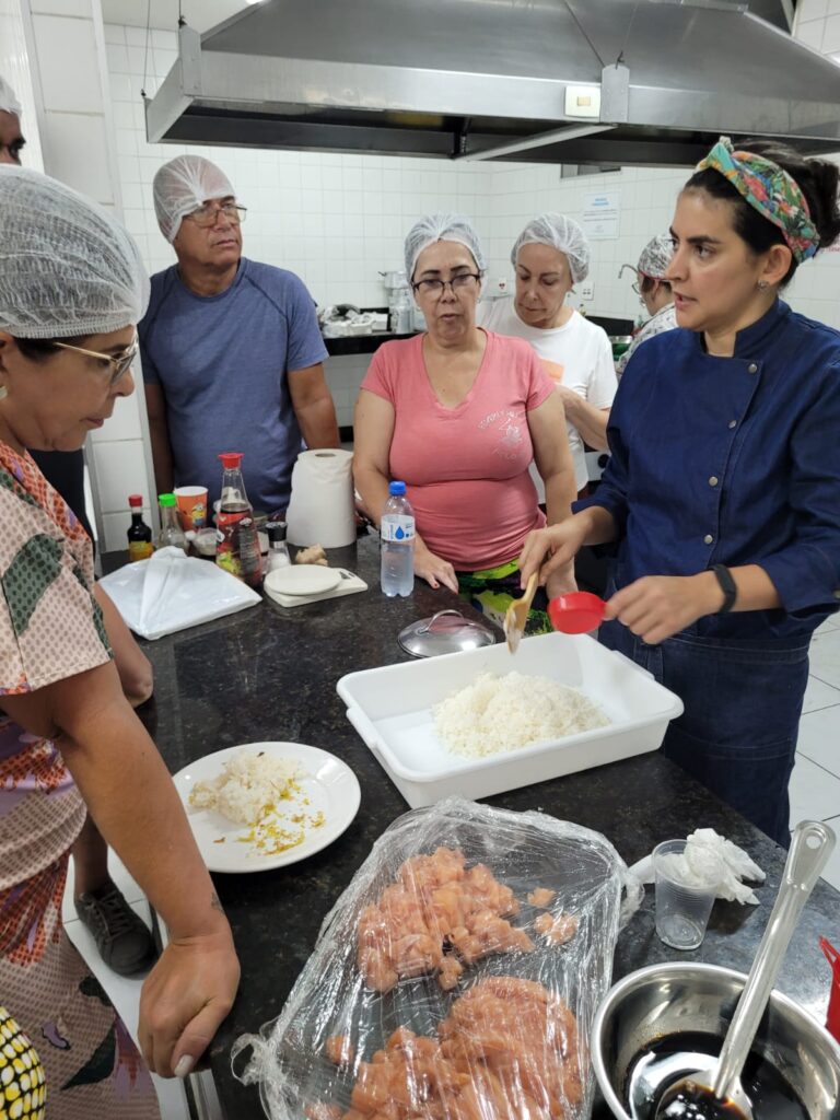 Aconteceu na terça-feira (14), na Sede Social BH, a nossa primeira Cozinha Gourmet de 2023. O evento para aposentados da Caixa, foi realizado no salão diamante e contou com a presença da nutricionista Cristilene Salomão, que ensinou os alunos várias delícias da culinária japonesa, dentre elas: temaki, yakissoba, molhos e muito mais!