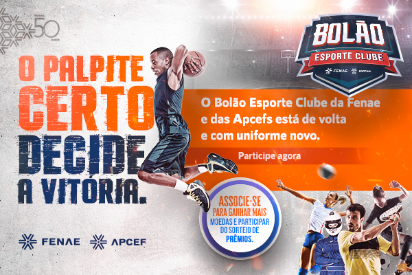 O Bolão Esporte Clube Fenae/Apcefs que movimentou os amantes de futebol durante a Copa de 2018 está de volta e, dessa vez, com uma novidade: os palpites serão abertos a várias modalidades de esporte além do futebol, como basquete, vôlei, tênis, fórmula 1, entre outros.