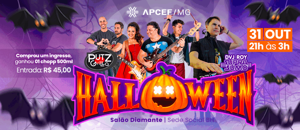 Chegou o dia! Nesta sexta-feira (31/10), acontece na Sede Social BH o Halloween da APCEF/MG. Ainda restam ingressos disponíveis pela área do usuário, e preparamos abaixo um boletim especial com todas as informações do evento.