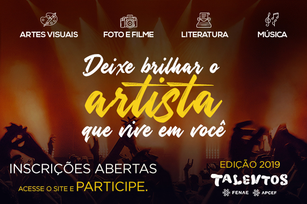 Vem aí uma nova edição do Talentos Fenae/Apcef. O concurso cultural, que valoriza as expressões artísticas dos empregados da Caixa ativos, aposentados ou pensionistas, já está com as inscrições abertas por meio do site www.fenae.org.br/talentos até o dia 25 de maio. A exemplo das edições anteriores reunirá as seguintes categorias: Imagem (Foto e filme), Artes Visuais (Desenho/Pintura e Desenho infantil), Literatura (Contos/Crônicas e Poesia) e Música (Composição e Interpretação).