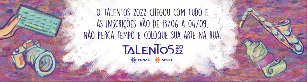 Artistas da Caixa, aposentados, pensionistas e dependentes já podem inscrever suas obras para a 7ª edição do Talentos Fenae/Apcef 2022. O prazo para participar do maior concurso cultural corporativo do país segue até o dia 04 de setembro. Não se esqueça! Para participar é preciso ser associado a uma das 27 Apcefs.