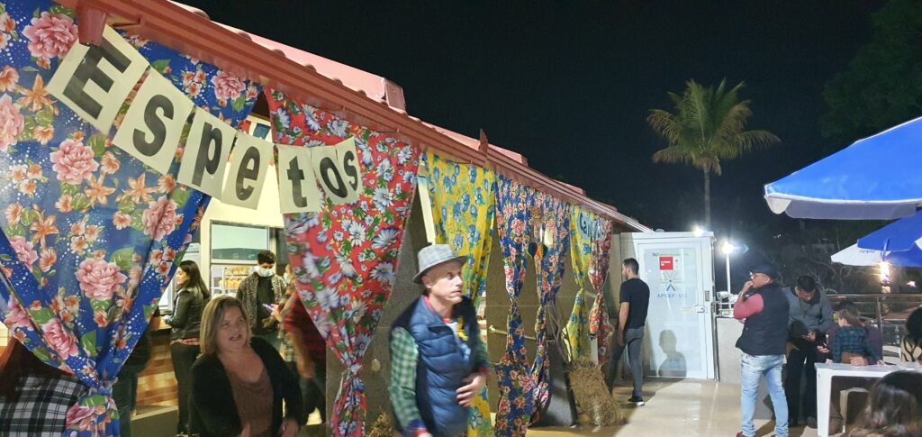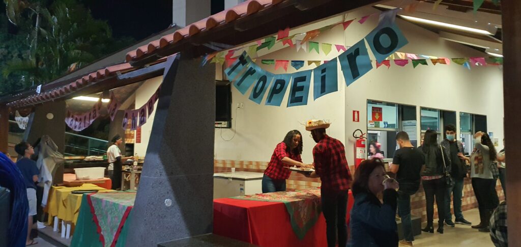 Além disso, o cardápio de comida foi bem pensado e elaborado para dar um toque especial na festa, com tudo muito típico de uma festa junina mesmo: cachorro quente, espetinho, pipoca e macarrão na chapa. Sem contar com a rodada dupla de drinks preparada especialmente para essa noite.