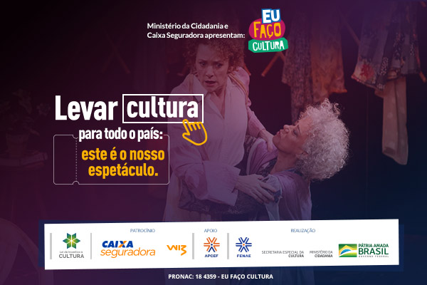 A ideia da campanha deste ano é mostrar o impacto que o Programa tem na cultura do país e na vida dos produtores e beneficiários amparados. Empregados da Caixa interessados em apoiar a cultura brasileira e participar do Eu Faço Cultura podem destinar parte do seu Imposto de Renda para o Programa.
