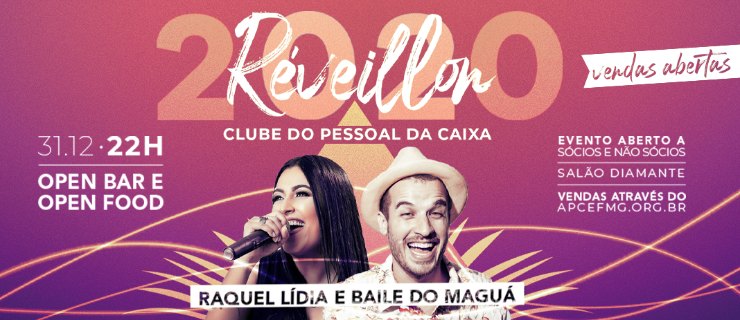As vendas online para o Réveillon 2020 estão encerradas! Os últimos ingressos podem ser adquiridos presencialmente, na Sede Social BH da APCEF/MG, nos seguintes dias e horários, com pagamento no cartão: