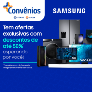 Benefícios Convênios Fenae e Apcefs: descontos exclusivos em produtos da Samsung pedem passagem Ler post » 10 de outubro de 2023